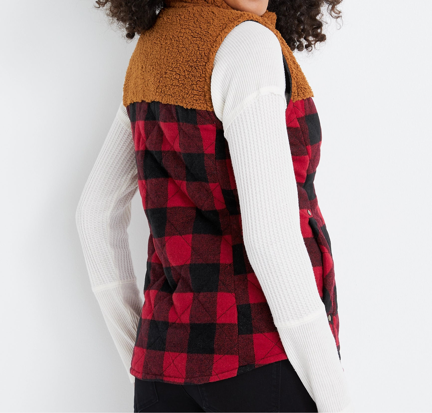 Maurice’s Plaid Red Puffer Styled Sherpa Detailed Vest